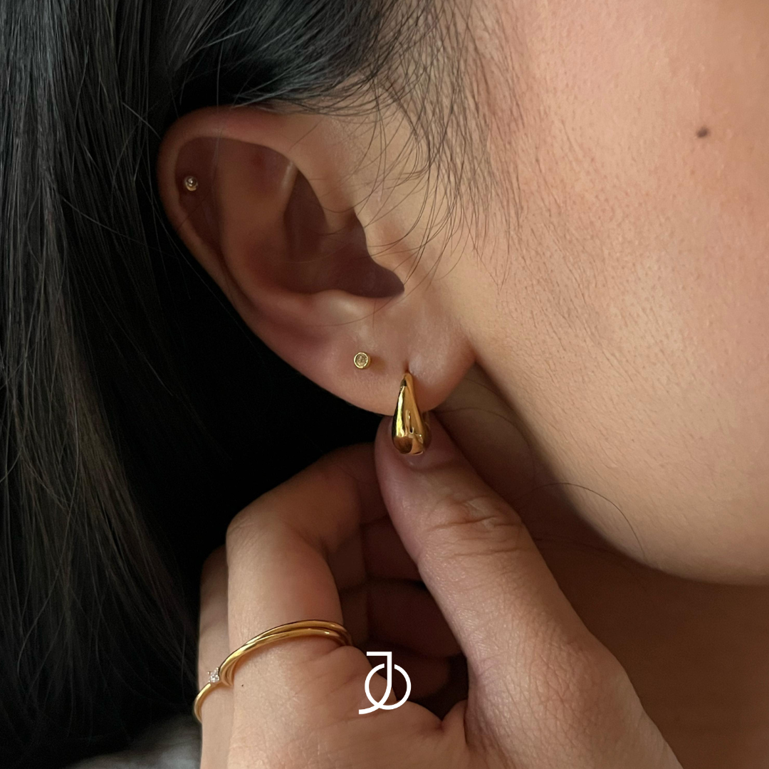 Great everyday earrings that will go perfectly with our JO Drop Huggies